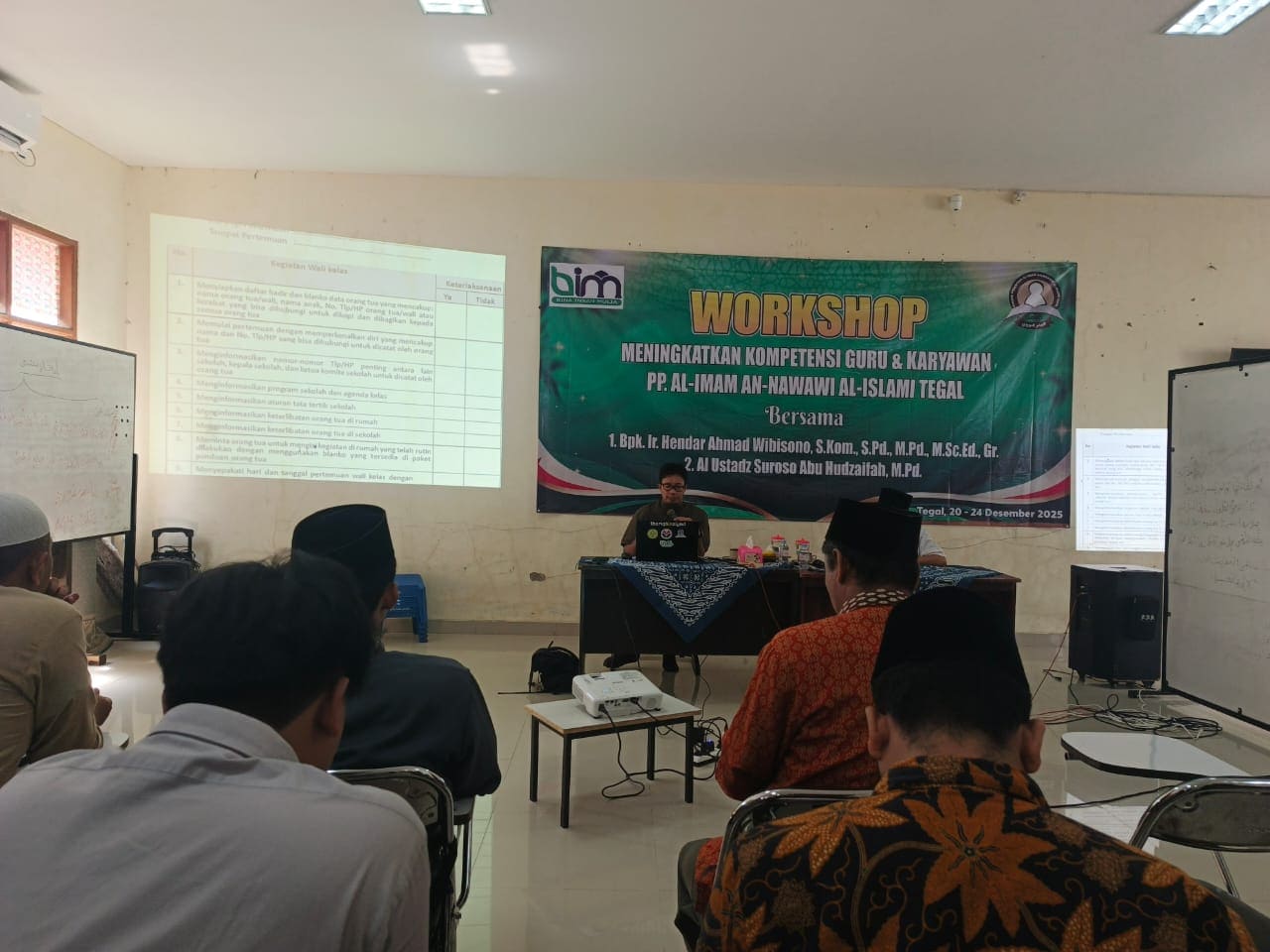 Tegal — Pondok Pesantren Al-Imam An-Nawawi Al-Islami Tegal menyelenggarakan kegiatan Workshop Meningkatkan Kompetensi Guru dan Karyawan sebagai upaya berkelanjutan dalam meningkatkan kualitas sumber daya manusia di lingkungan pesantren. Kegiatan yang berlangsung selama lima hari, 20–24 Desember 2025, ini diikuti oleh para guru dan karyawan dengan penuh antusias serta semangat pengembangan diri.